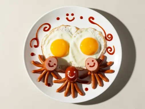 Яйца куриные, Сосиски, Масло подсолнечное, Лук зеленый, Соль